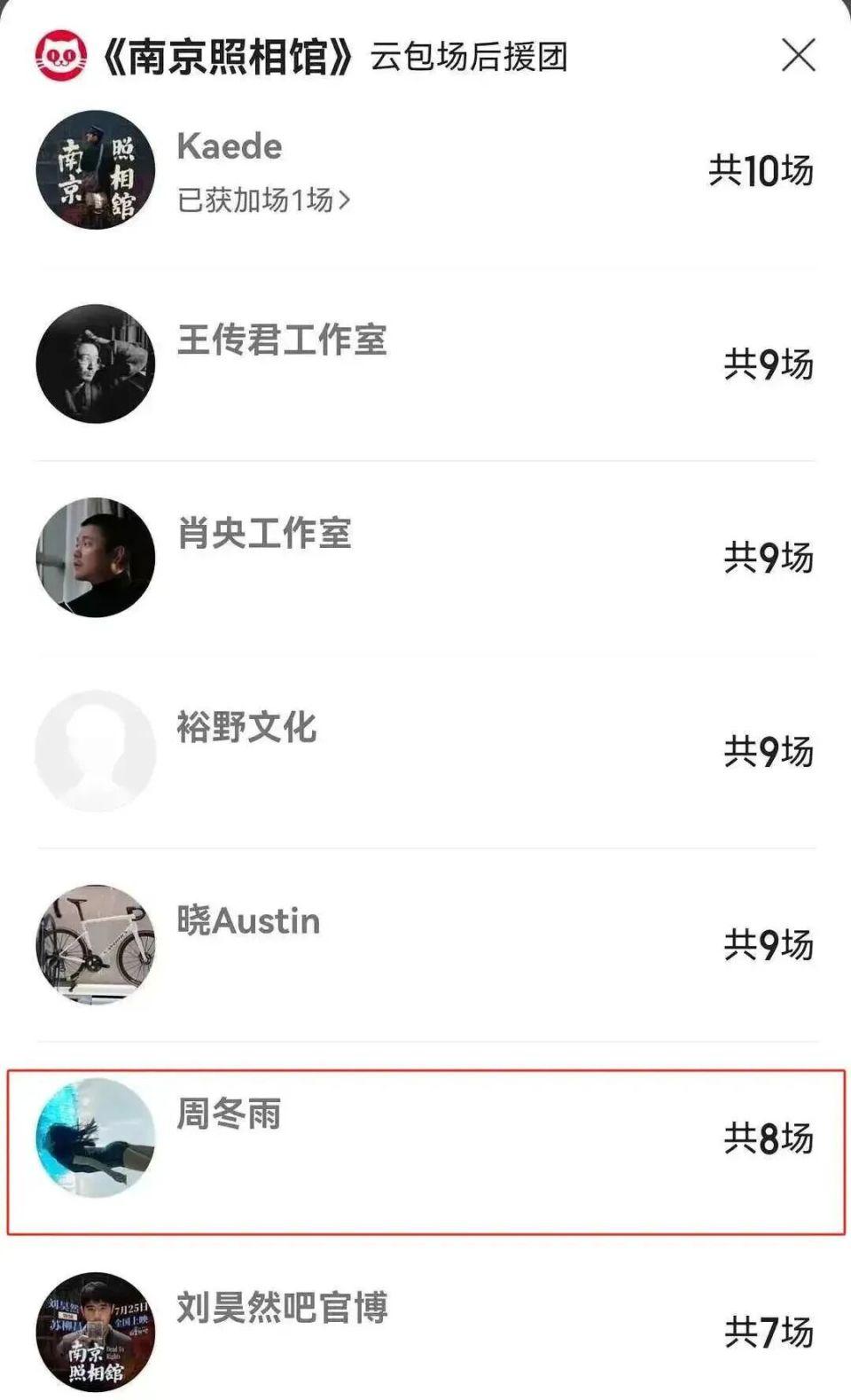 但在这之后不久,刘昊然新电影《南京照相馆》上映,周冬雨的名字却出现在云包场名单里,而且是一个账号一口气包下 8 场。